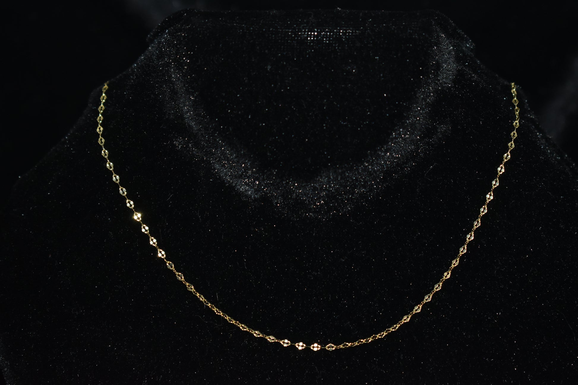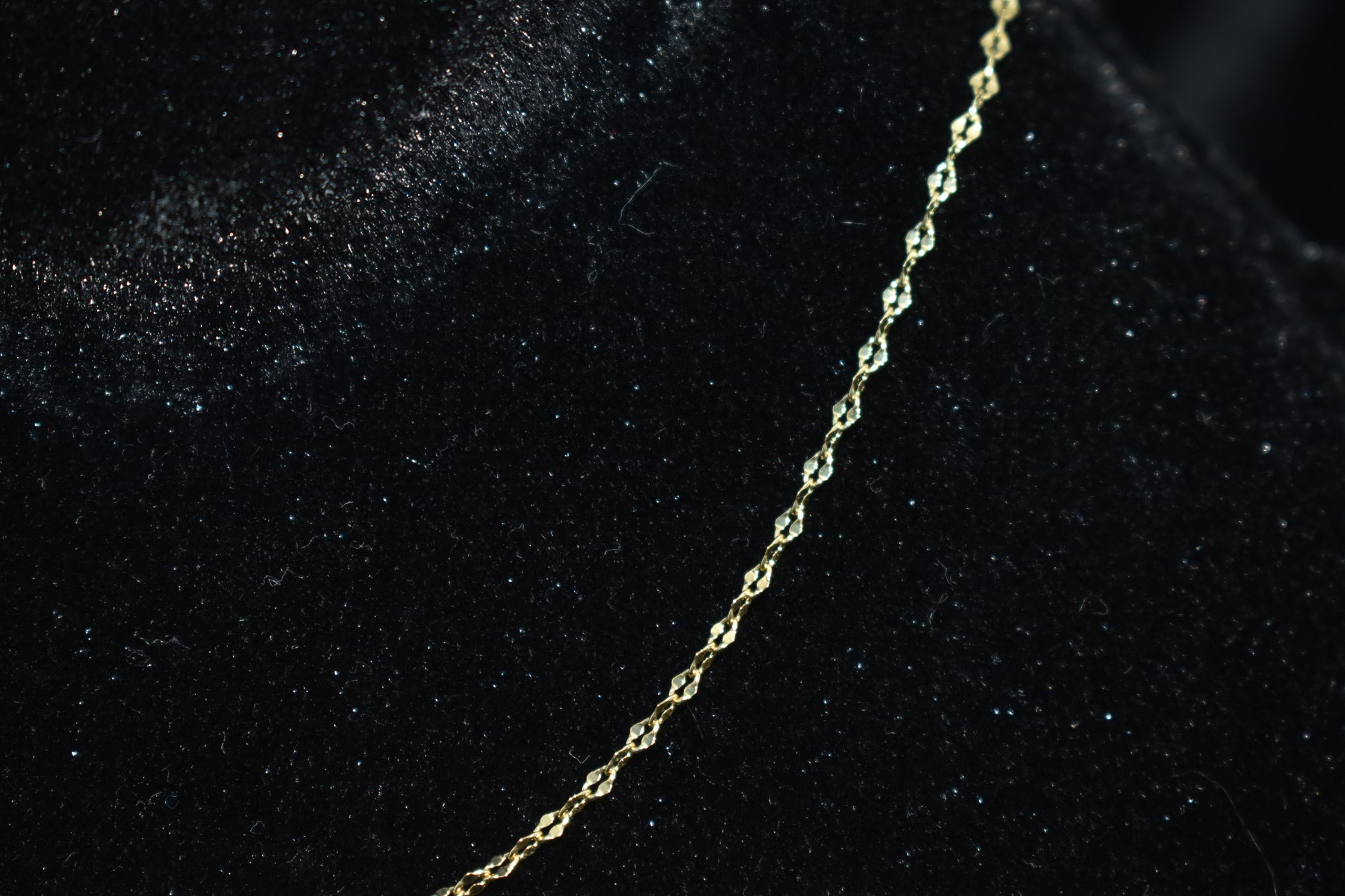 Cadena en oro laminado 18K elaborados con diseños finos y elegantes, perfectos para el uso diario o para complementar cualquier atuendo. Acabado pulido que resalta la belleza natural del oro, con cierres seguros y cómodos. Todas nuestras piezas están contramarcadas en sus broches como sello de autenticidad.