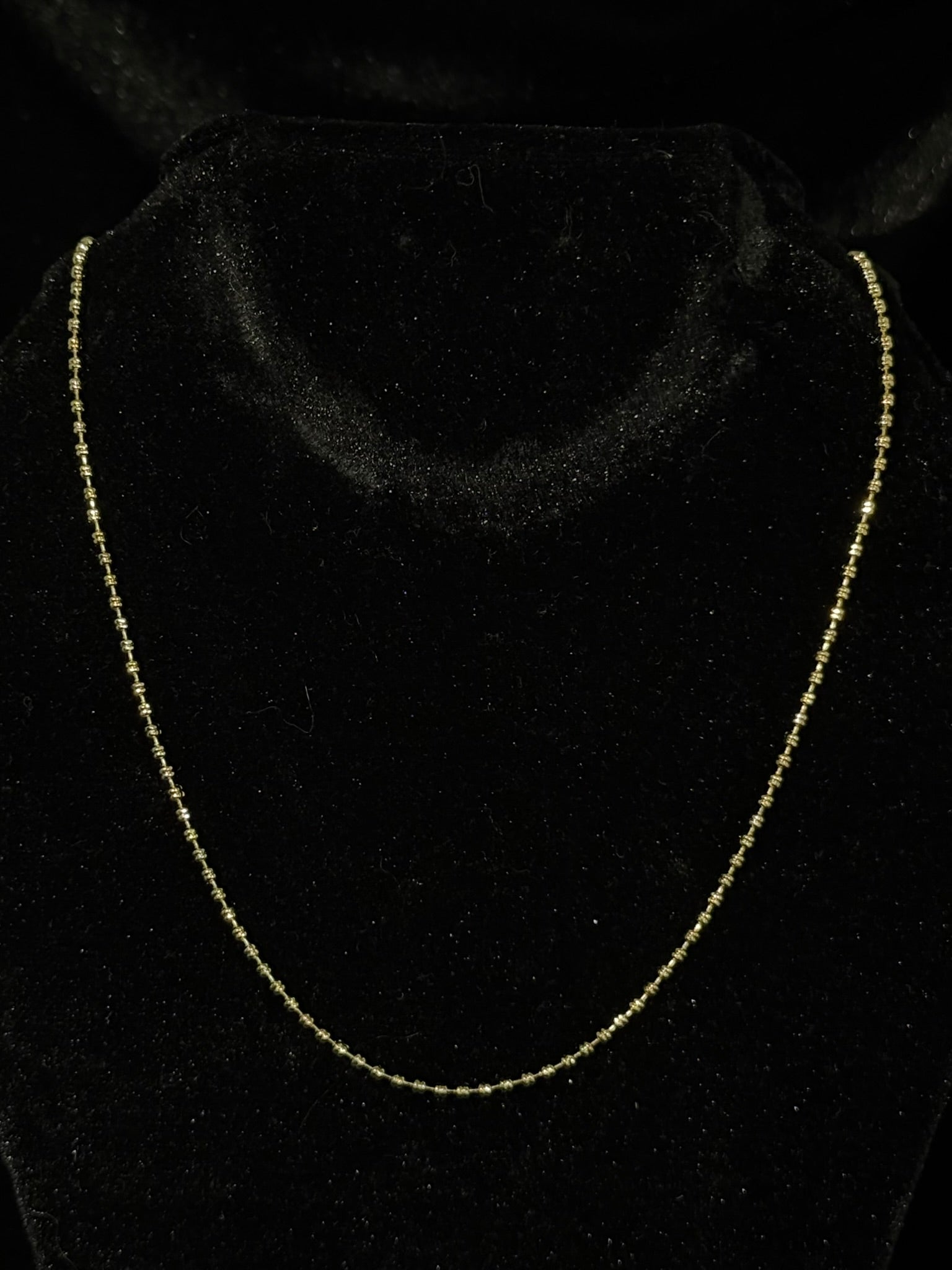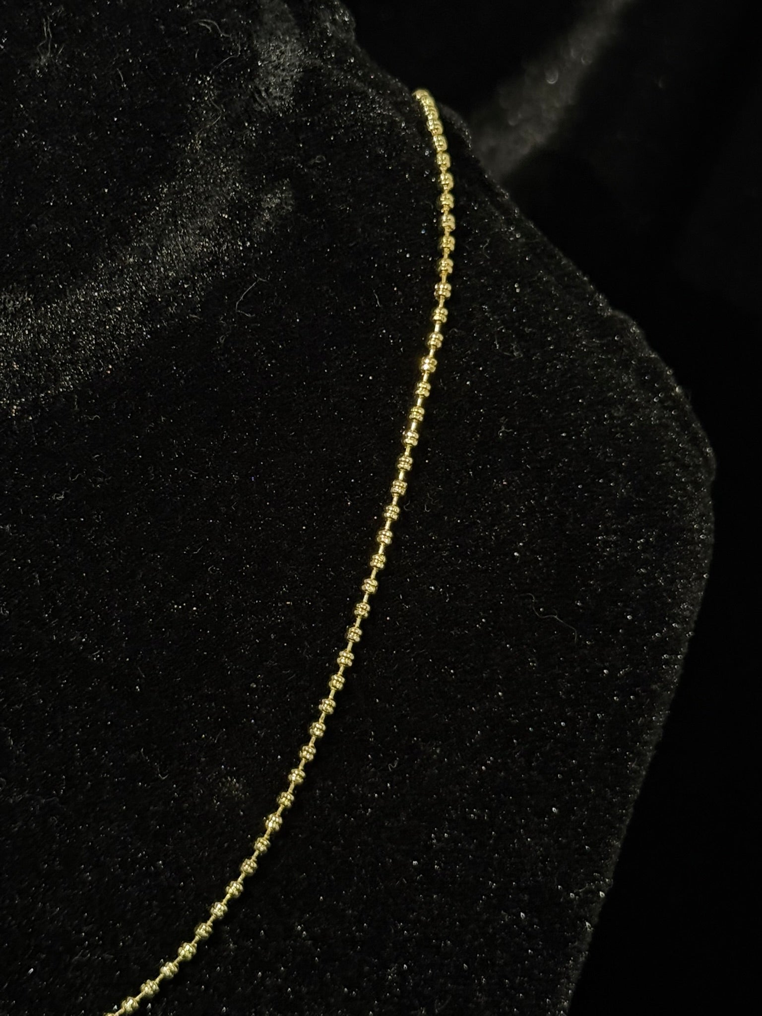 Cadena en oro laminado 18K elaborados con diseños finos y elegantes, perfectos para el uso diario o para complementar cualquier atuendo. Acabado pulido que resalta la belleza natural del oro, con cierres seguros y cómodos. Todas nuestras piezas están contramarcadas en sus broches como sello de autenticidad.