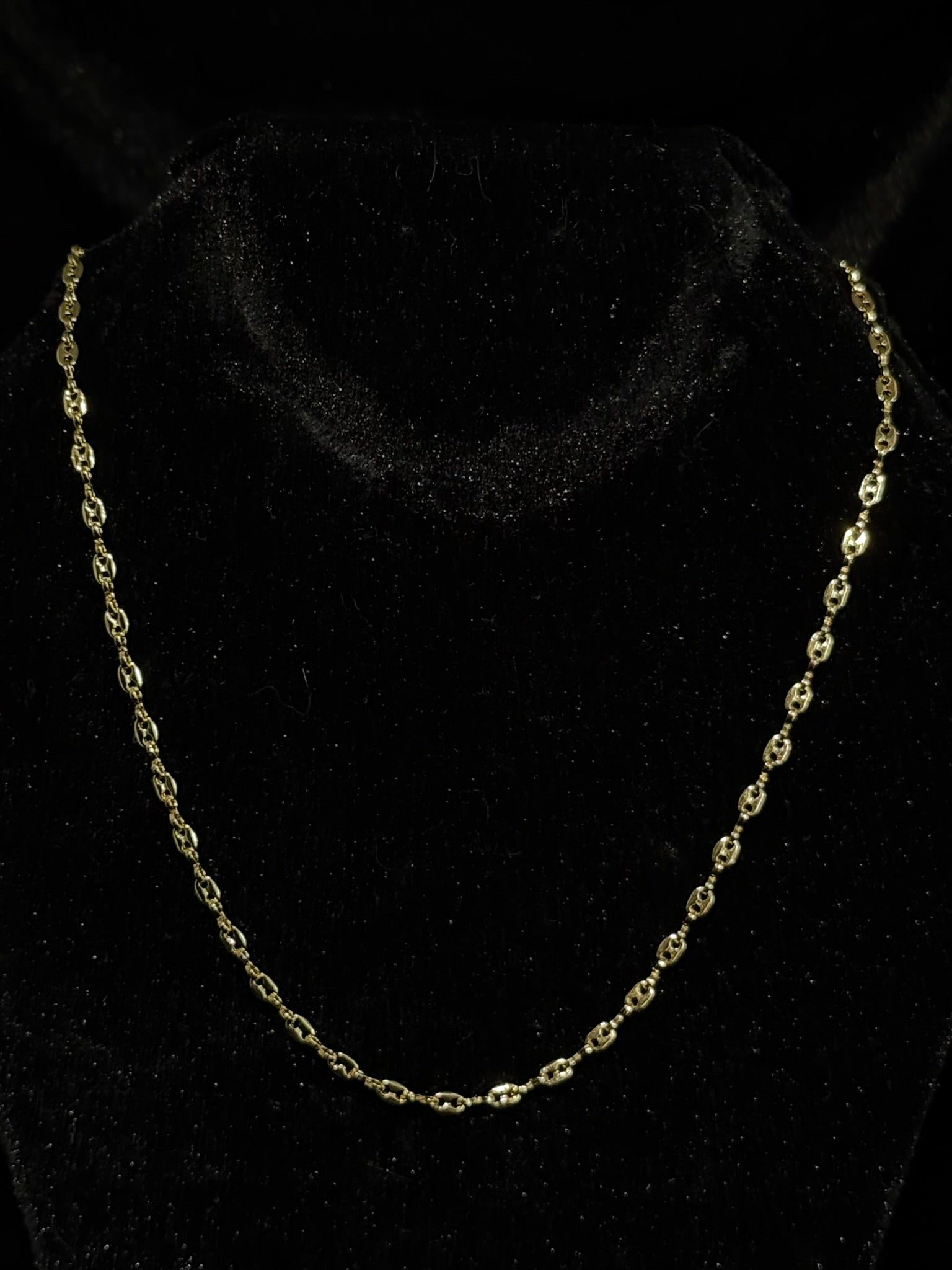 Cadena en oro laminado 18K elaborados con diseños finos y elegantes, perfectos para el uso diario o para complementar cualquier atuendo. Acabado pulido que resalta la belleza natural del oro, con cierres seguros y cómodos. Todas nuestras piezas están contramarcadas en sus broches como sello de autenticidad.