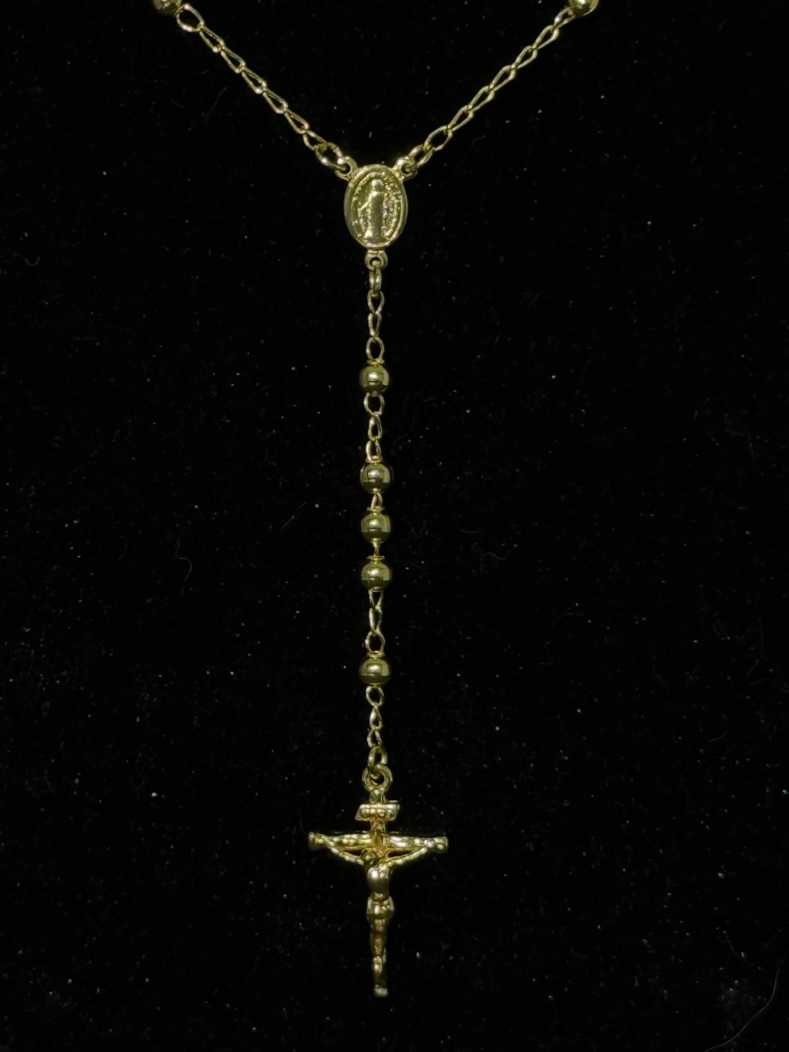 Camándula en oro laminado 18K elaborados con diseños finos y elegantes, perfectos para el uso diario o para complementar cualquier atuendo. Acabado pulido que resalta la belleza natural del oro, con cierres seguros y cómodos. Todas nuestras piezas están contramarcadas en sus broches como sello de autenticidad.