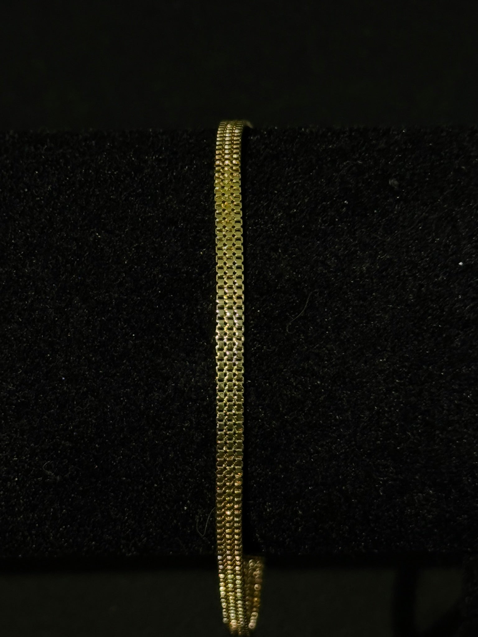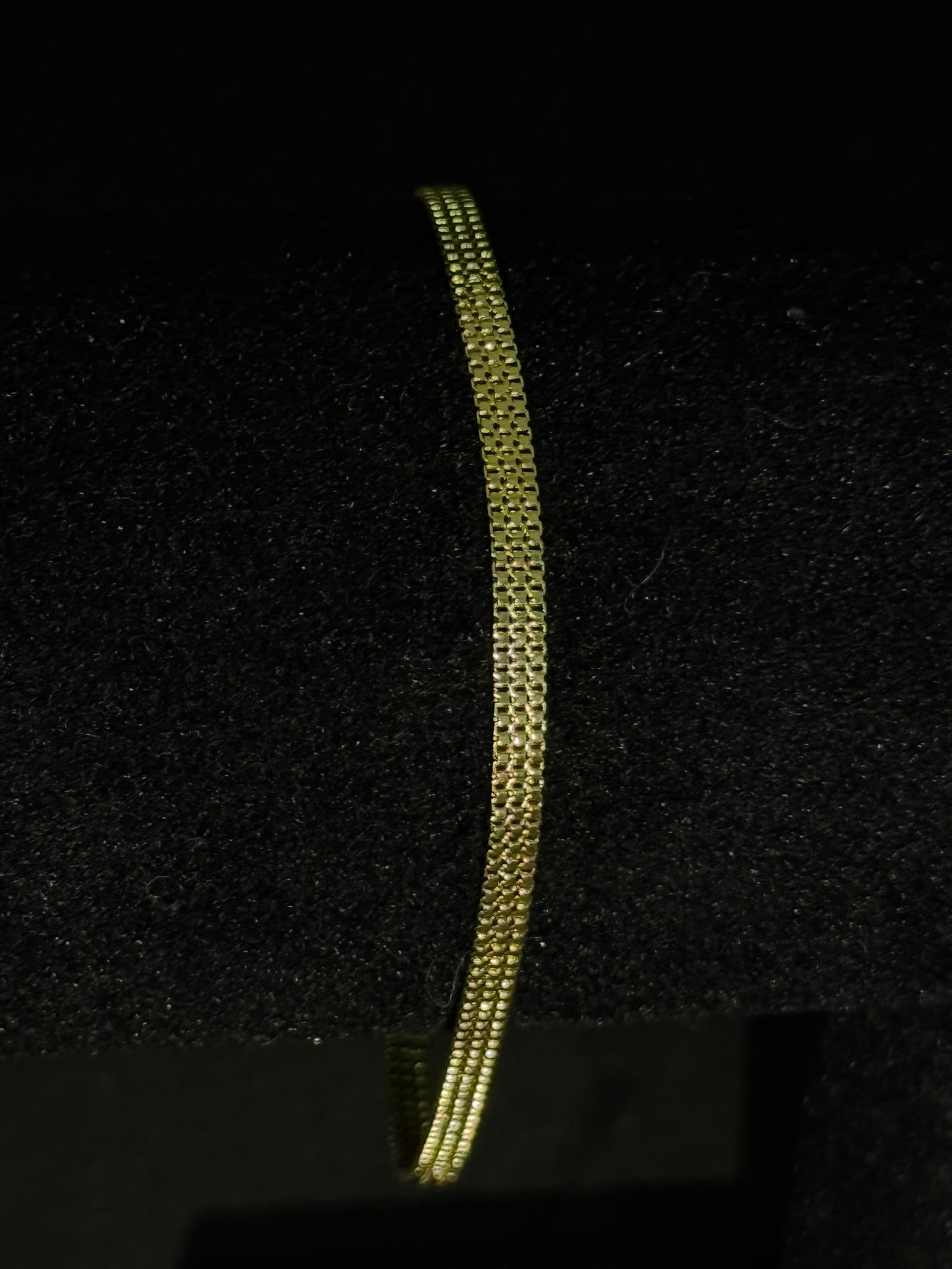 Pulsera en oro laminado 18K elaborados con diseños finos y elegantes, perfectos para el uso diario o para complementar cualquier atuendo. Acabado pulido que resalta la belleza natural del oro, con cierres seguros y cómodos. Todas nuestras piezas están contramarcadas en sus broches como sello de autenticidad.